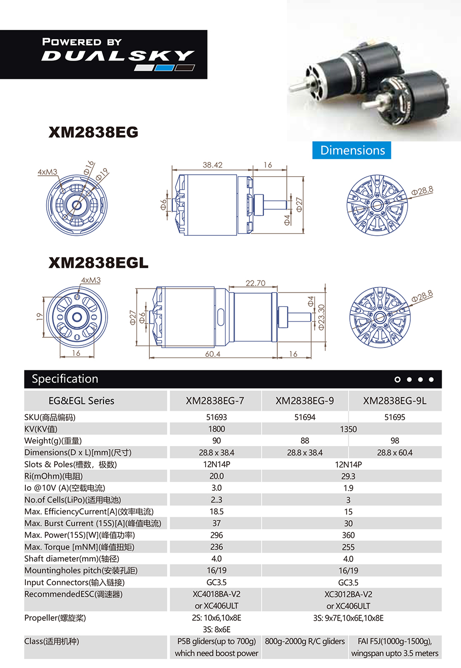 Best deal 👍 ZYHOBBY DUALSKY Xmotor EG Outrunner Brushless Motor XM2838EG 860KV 1100KV 1350KV 1800KV For EP Gliders 👏